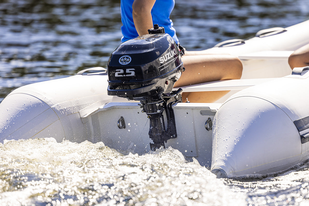 The Suzuki DF2.5 portable outboard is the most compact, and portable, Suzuki four-stroke to date. Weighing just 30 pounds, the DF2.5 is the lightest motor in its class. Additionally, the DF2.5 meets the rigorous EPA 2010 and CARB 3-Star Ultra-Low Emissions standards. This engine hosts a 2.5 HP single cylinder OHV four-stroke engine, with 4.15 cu. in. displacement. This model generates plenty of power for small tenders and inflatables, and features easy-to-pull recoil starting with the Suzuki Pointless Electronic Ignition. The DF2.5 requires no battery, but remains remarkably simple and reliable.