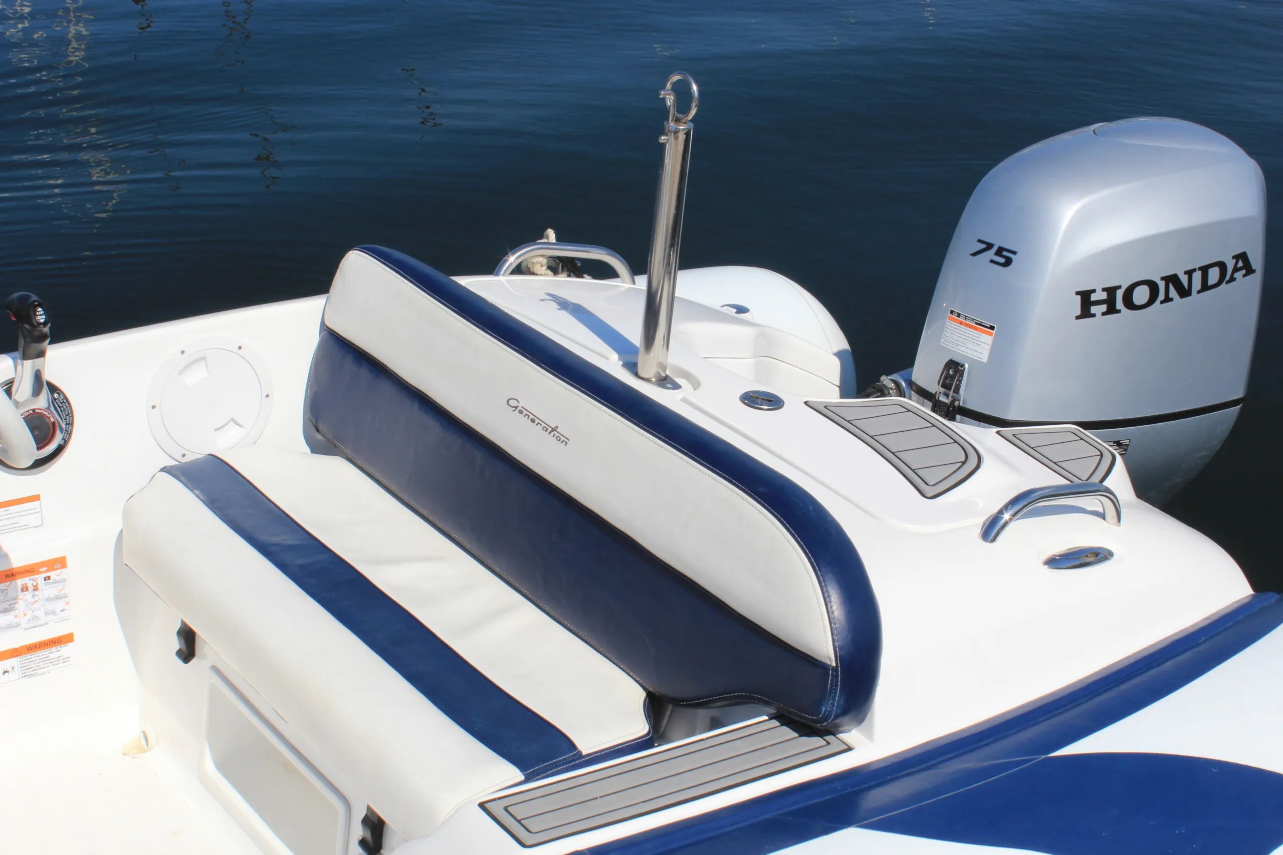 The stringer manufacturing system allows for a more even integrated distribution load through the hull giving it extra strength when the boat is lifted. Other areas of reinforcement include the steering arm and telescopic ski pole. The Generation 400 DLX also have a hull liner that not only improves the integrity and ride of the boat, but provides a smooth clean floor for the rear storage compartments.