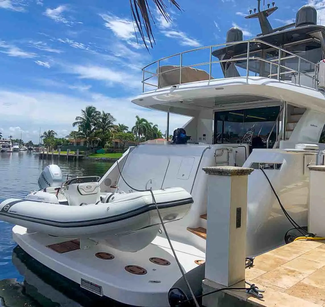 The exceptional ride of the Generation 450 DLX yacht tender’s deep V-Hull plus the additional 75HP rating results in exhilarating performance. The superior layout, ample storage, the integrated ski pole and boarding ladder in this deluxe yacht tender provide more fun on and in the water.