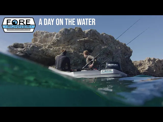 With the installed eyebolts in multiple places, the 340 can be quickly lifted onto the deck of a boat for storage. The real beauty of this craft is that you get the feel, strength and safety of a standard RIB (rigid inflatable boat) but still have the ability to “make it go away”. In minutes the Fore Runner can go from being an offshore craft to sitting in the provided weather-proof travel bag.