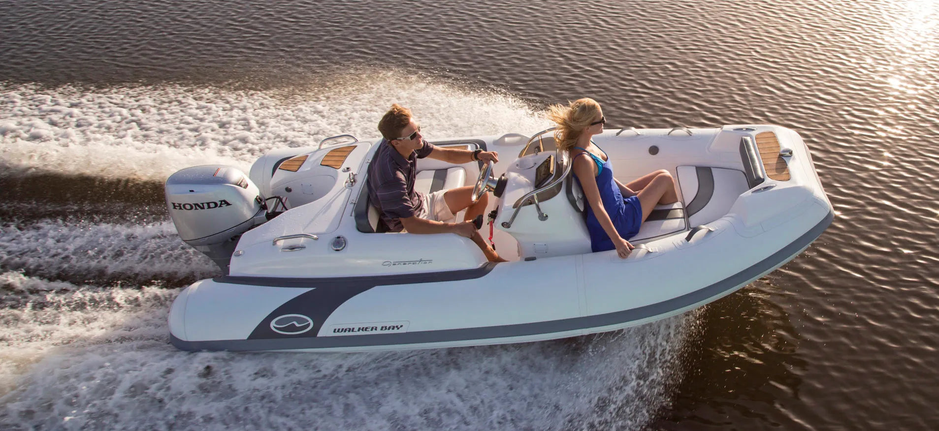 The Generation 400 is built using Walker Bay’s proprietary Polyurethane Composite Micro Stringer system making the hull lighter and stronger. The Generations also have a unique approach to joining the hull and deck using a unidirectional glass and polyurethane grid bonding system that eliminates the air cavity found in other RIBs. The result is a stronger hull that better absorbs wave chop, and its lighter weight gives a faster top speed and makes it quick to plane.
