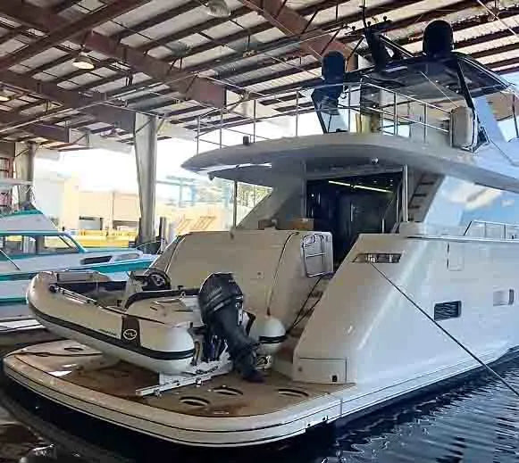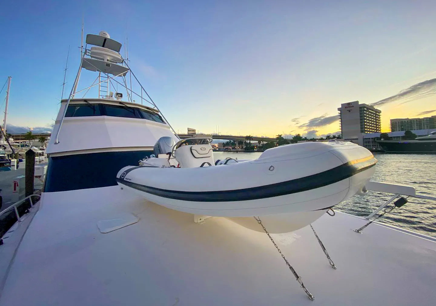The exceptional ride of the Generation 450 DLX yacht tender’s deep V-Hull plus the additional 75HP rating results in exhilarating performance. The superior layout, ample storage, the integrated ski pole and boarding ladder in this deluxe yacht tender provide more fun on and in the water.