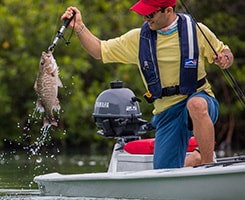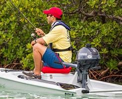 Our 72-cc 2.5-hp portable outboard is the smallest motor on our roster, but it still packs a punch. Completely redesigned, it’s even more portable, easier to store and clean burning.
