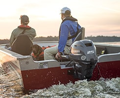 Our 432-cc 25-hp portable outboard features a streamlined, portable design and class-leading power-to-weight. While it’s 25 percent lighter than its previous design, it still packs exciting features like battery-less EFI. Pull-start models can now take advantage of this feature, plus the system is designed with an automatic decompression device to require even less effort for manual starting.