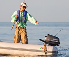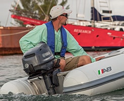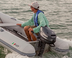 Our 139-cc 4-hp portable outboard mirrors our OHV F6, with a couple less horses. It features the same ergonomic, easy-grip starter handle with a built-in decompression device for effortless starts. The F4 also features a built-in fuel tank with the option of switchable access to an additional external tank for amazing extended range. There’s no stopping this little brute.