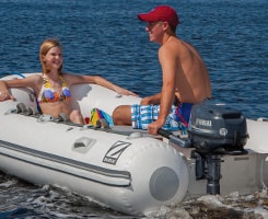 Our 139-cc 6-hp portable is an impressive little outboard. It boasts surprising features for such a small motor, like labyrinth exhaust and a long span mounting system for smooth, quiet power. It also offers the convenience of an external fuel tank (in addition to its built-in tank) for extended range and added convenience.