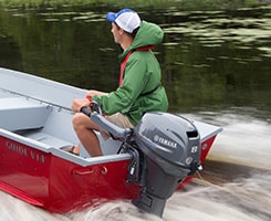 Our 212-cc 8-hp portable outboard features 7.5 percent more displacement than its previous design. This SOHC two cylinder outboard delivers a nice balance of power, performance and portability for jon boats and inflatables. Its new, shorter tiller handle makes operation more comfortable, so you can make a whole day of it.