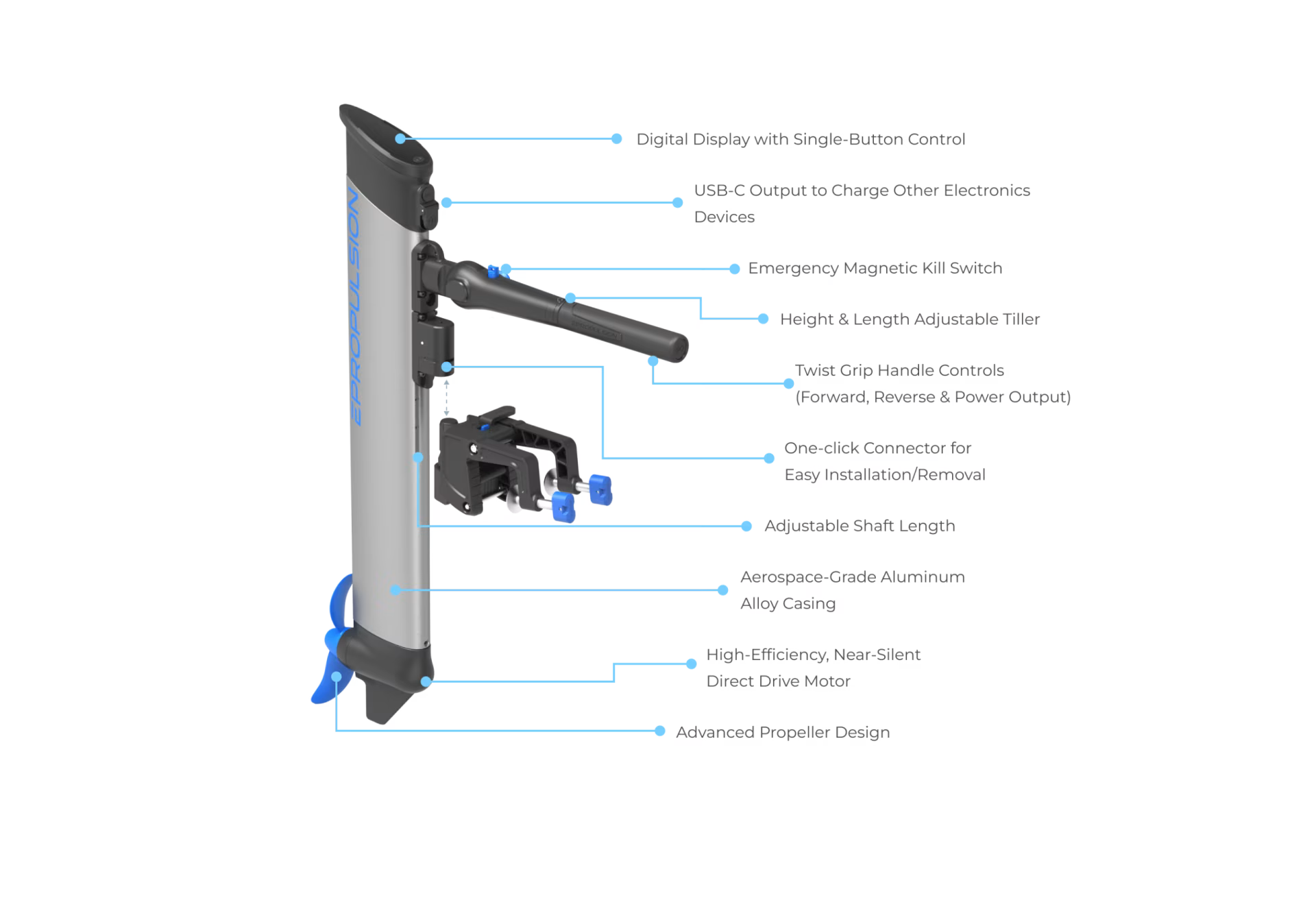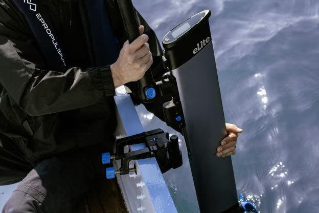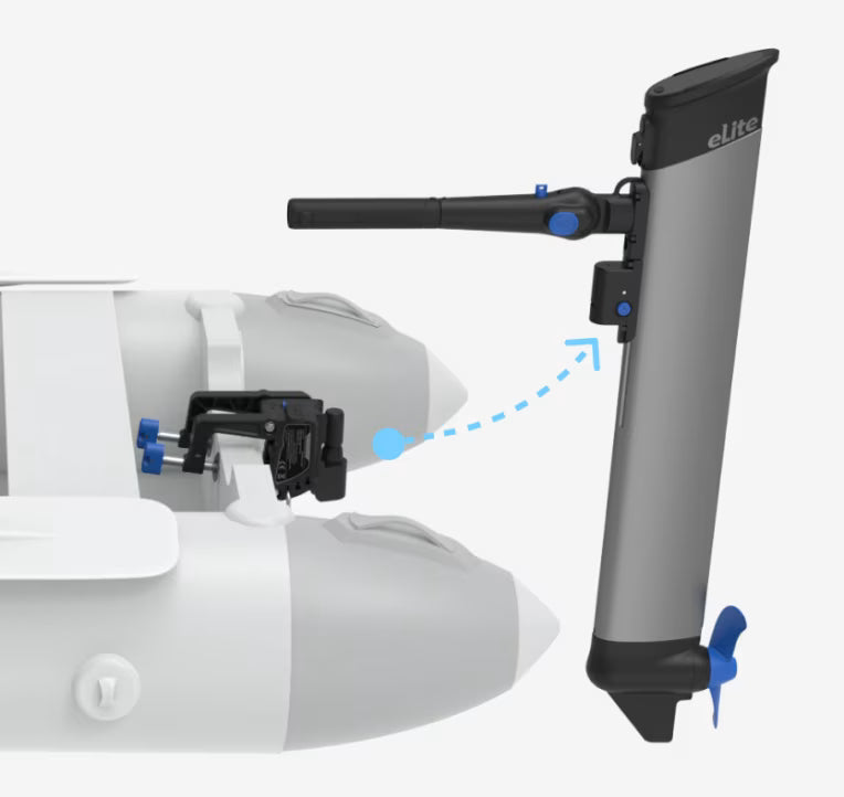Yes. The eLite features a one-click mounting bracket for quick installation and removal, a folding tiller for balanced carrying, and a travel bag included for hassle-free storage and transport. Its lightweight build makes handling simple on docks, beaches, and tenders.