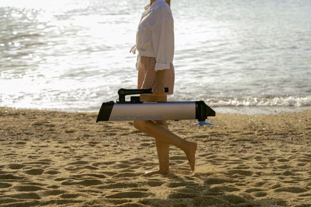 The integrated 378 Wh lithium-ion battery delivers up to 1.5 hours of runtime at half power and roughly 45 minutes at full power. Actual runtime depends on load, water conditions, temperature, and operating mode. A Sport Mode boost up to 750 W is also available for short bursts.